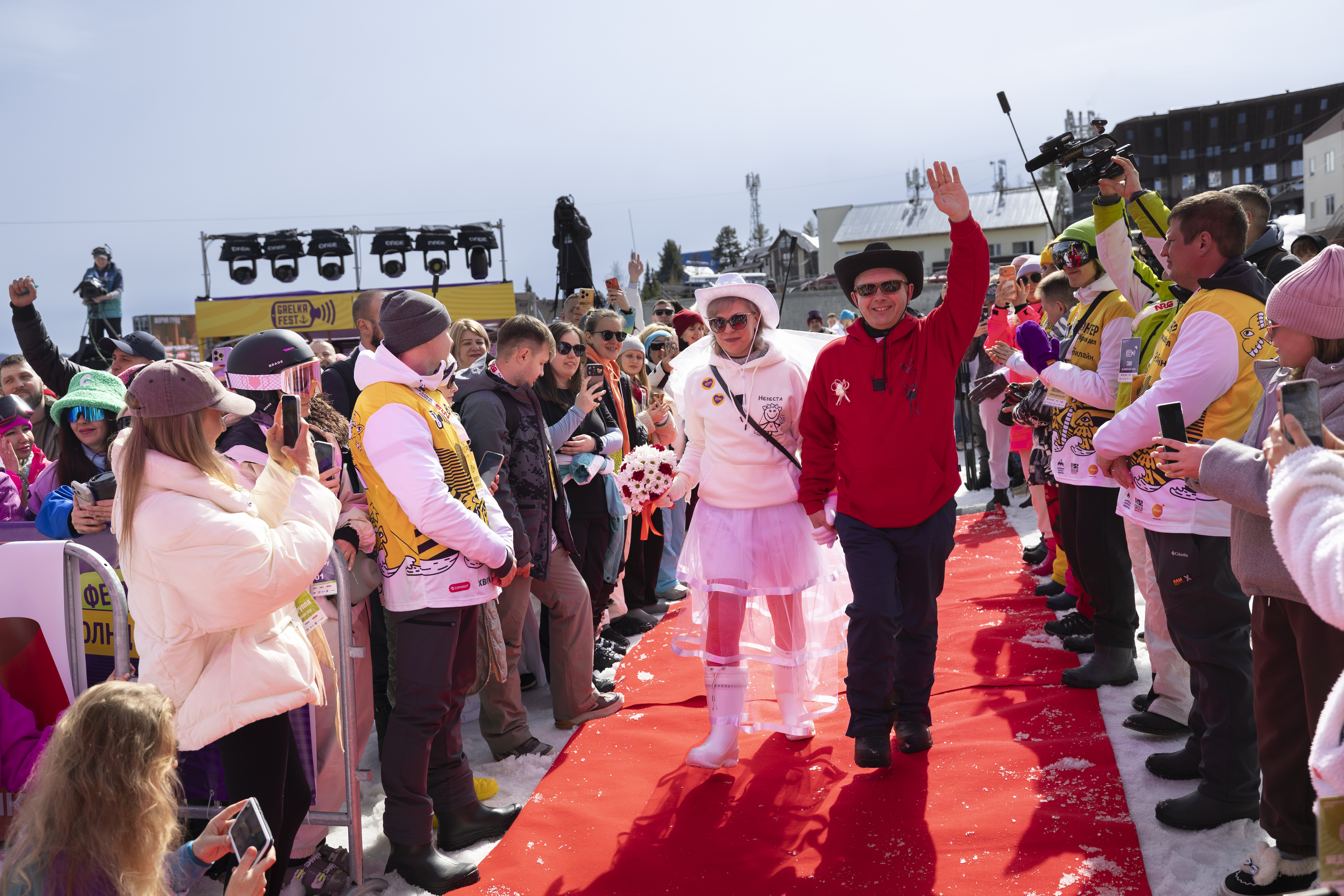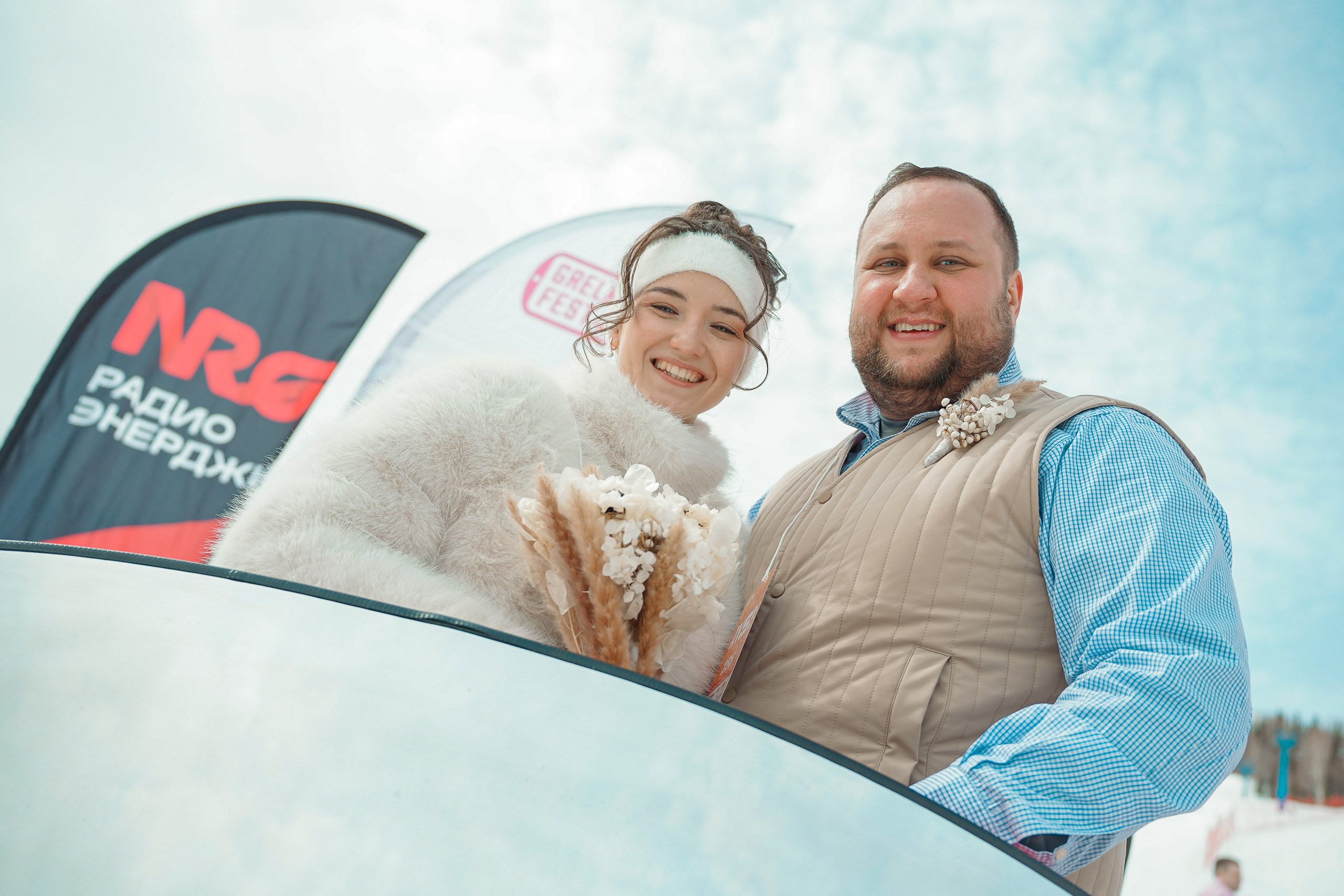 Одна из самых трогательных историй — у Константина и Вероники из Новосибирска. Два года назад по пути в Шерегеш пара попала в ДТП, жених получил травмы, но именно в больнице сделал предложение. В этом году пара узнала, что на фестивале «ГрелкаФест» можно зарегистрировать брак. Ребята решили, что для них это будет особенно символично.